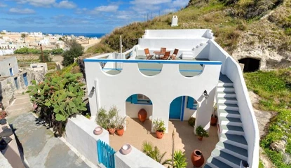 Carved directly into the cliffside rock, these dwellings offer natural insulation and breathtaking caldera views.